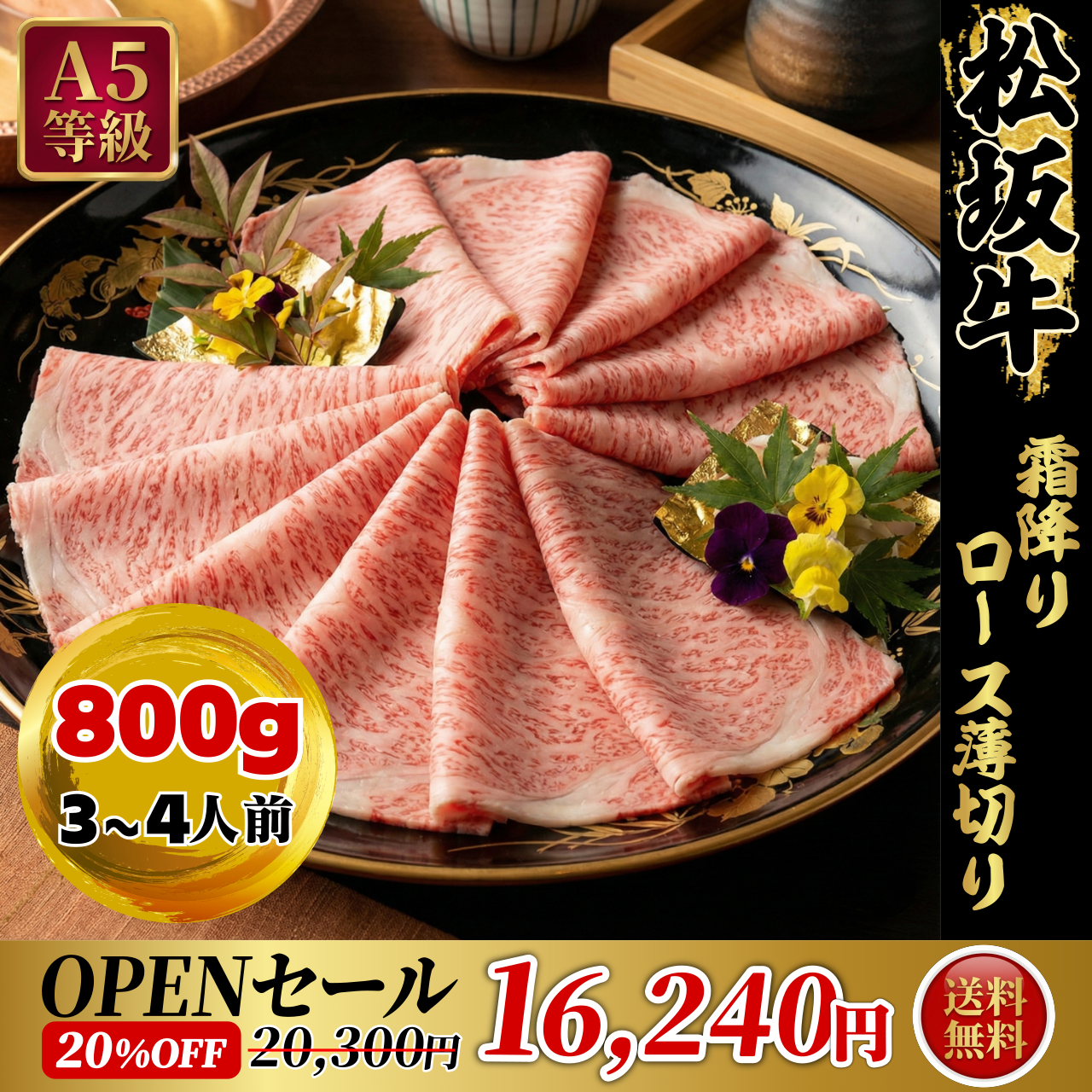【オープン記念割引 送料無料】通常価格より4060円OFF【A5ランク松坂牛 霜降り薄切りロース800g】