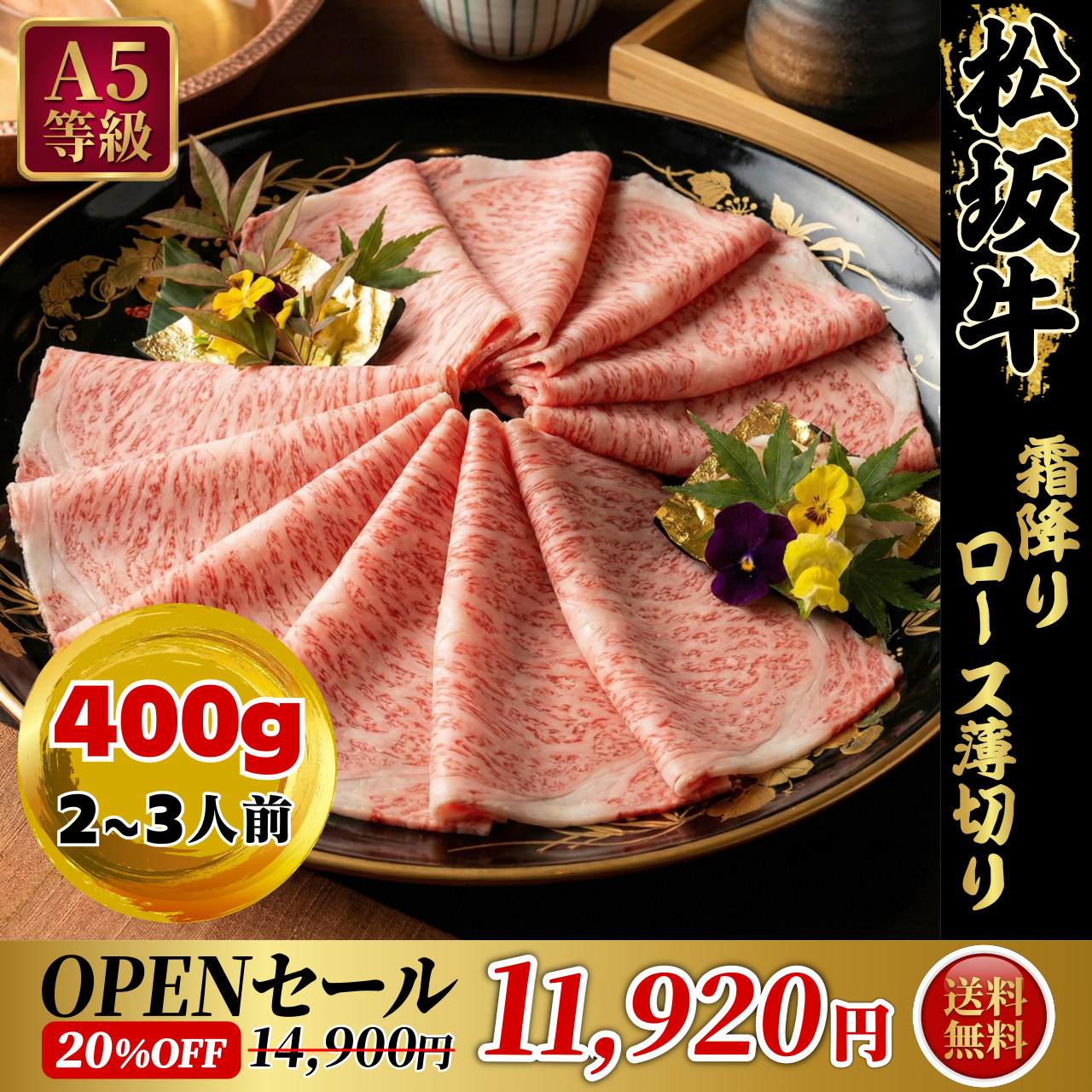 【オープン記念割引 送料無料】通常価格より2980円OFF【A5ランク松坂牛 霜降り薄切りロース400g】